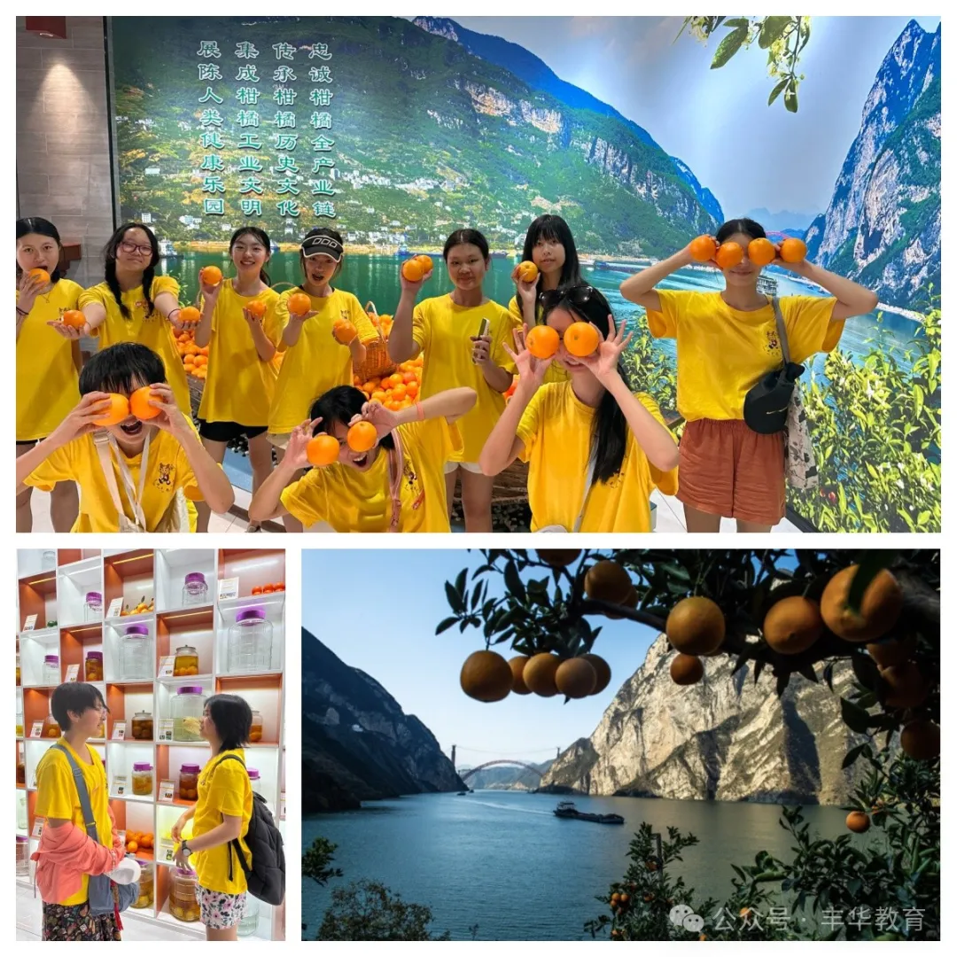 屈原祠所在的秭归县亦是“中国脐橙之乡”,约2300年前,屈原《橘颂》即有“后皇嘉树,橘徕服兮”的诗作。结束了屈原祠的参观之后同学们又来到屈姑食品有限公司体验当地的柑橘文化,这里俨然是一座脐橙博物馆,向大家展示了脐橙从花到果、从皮到渣的“吃干榨尽”全过程。