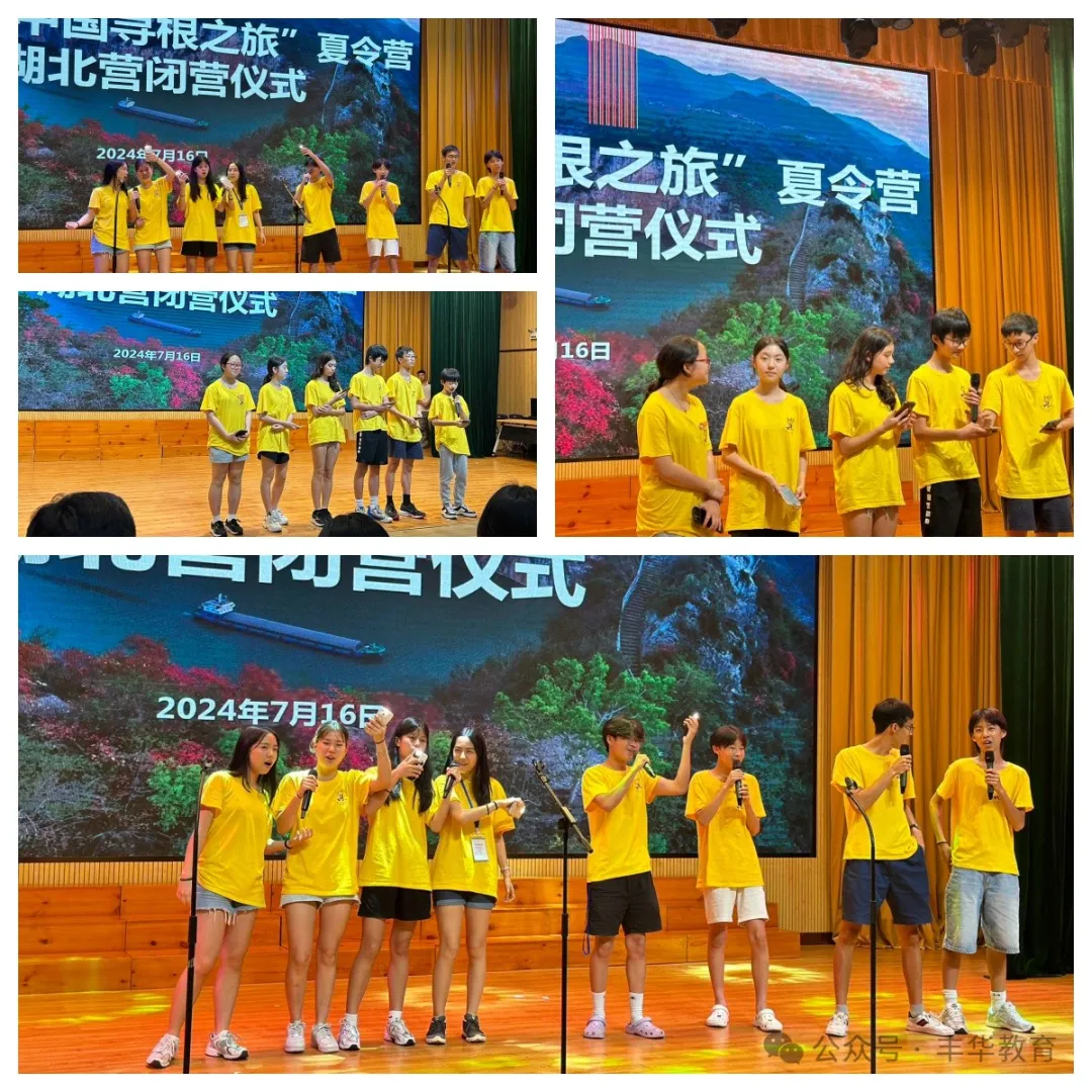 这一天大家的湖北寻根之旅已经接近了尾声。下午,2024年“中国寻根之旅”夏令营湖北营的闭营仪式在宜昌市青少年学校举行。在仪式上,丰华中文学校的营员们跟大家分享了在本次旅行中最难忘与最有趣的事物和瞬间:有的同学说他最难忘的是武汉的热干面,麻酱的香气让他欲罢不能;有的同学说他对中国古代的建筑印象深刻,尤其是气势非凡的武当山紫霄宫;有的同学喜欢参观各式各样的博物馆,因为可以学到很多在澳洲学校里学不到的新知识;也有的同学非常喜爱湖北省美丽壮阔的风景,三峡大坝、武当山、燕子洞都给她留下了深刻的印象;还有的同学感恩他在旅途中又认识了很多新朋友;也有的同学很开心自己为家人和朋友买到了很多有趣的纪念品。最后,丰华的几位同学还和来自其他国家的华裔青少年一起合唱了一首《see you again》,表达了对夏令营美好时光的怀念和对未来再会的期许。