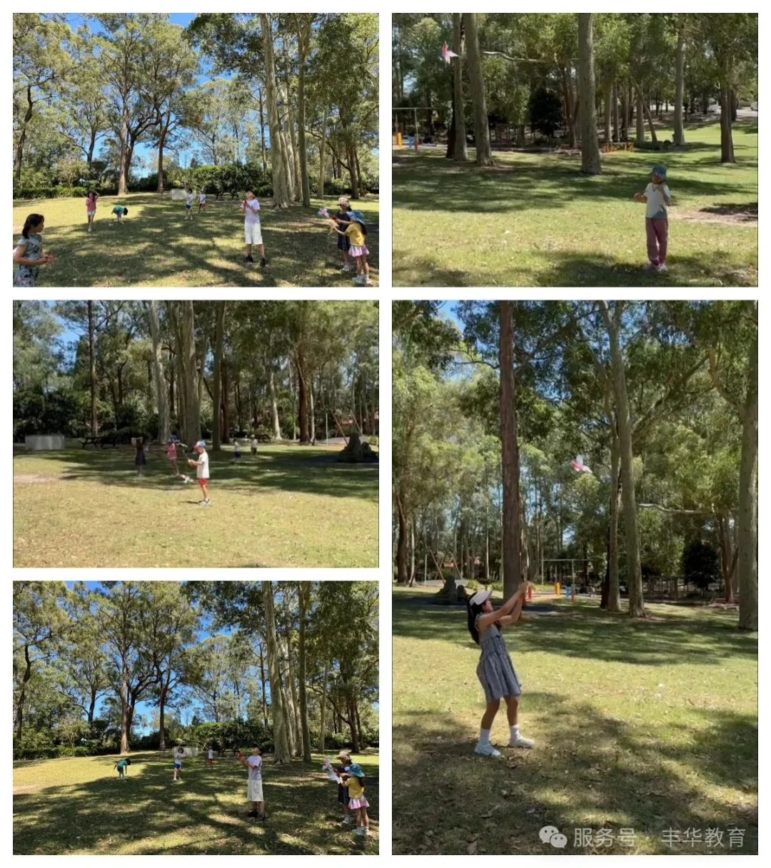 这次的假期营还特别安排了阳光下的户外活动日。孩子们手持风筝在绿地间欢快奔跑,看着一个个风筝缓缓升空,欢呼声随风飘扬;投壶场地上,一个个认真瞄准、投掷的身影,在每一次“命中”时绽放出灿烂的笑容。传统游戏滚铁环并不容易,但是大家想要尝试的热情高涨,银环滚动,轨迹难控,但孩子们毫不气馁,一次次弯腰尝试,互相传授着“稳住节奏”的小秘诀。笑声、加油声、铁环划过地面的清脆声响交织在一起……传统游戏不仅锻炼了孩子们的协调性与耐心,更在合作的氛围中,让中华文化的趣味与智慧,悄然渗透进这个充满活力的午后。